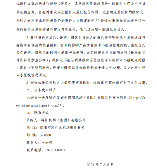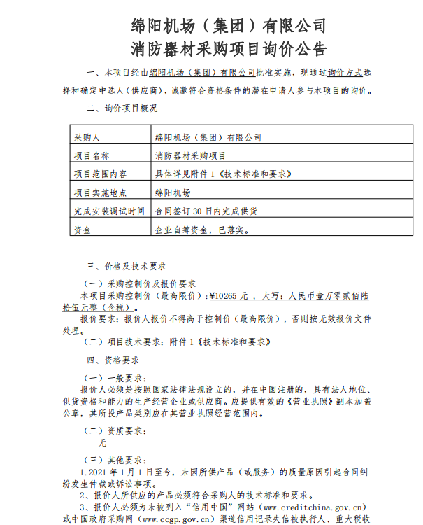 綿陽機(jī)場(chǎng)(集團(tuán))有限公司 消防器材采購(gòu)項(xiàng)目詢價(jià)公告