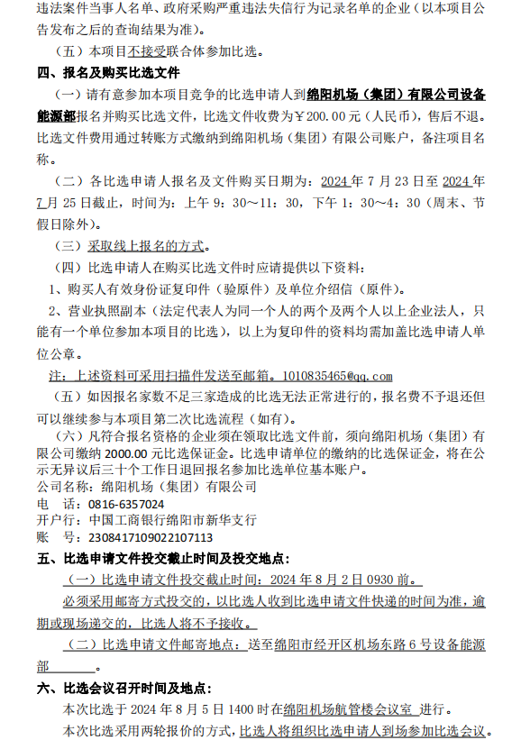 綿陽機場消防設施設備維保項目比選公告