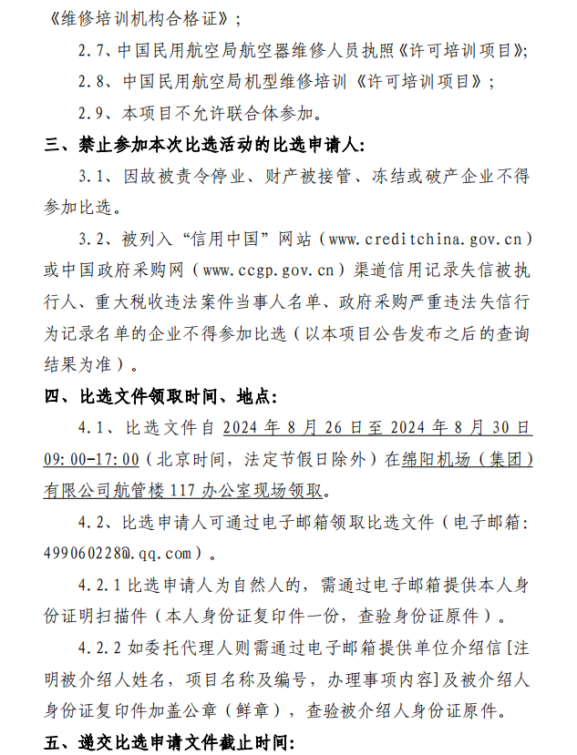 綿陽機場B737NG機型培訓機構采購項目比選公告