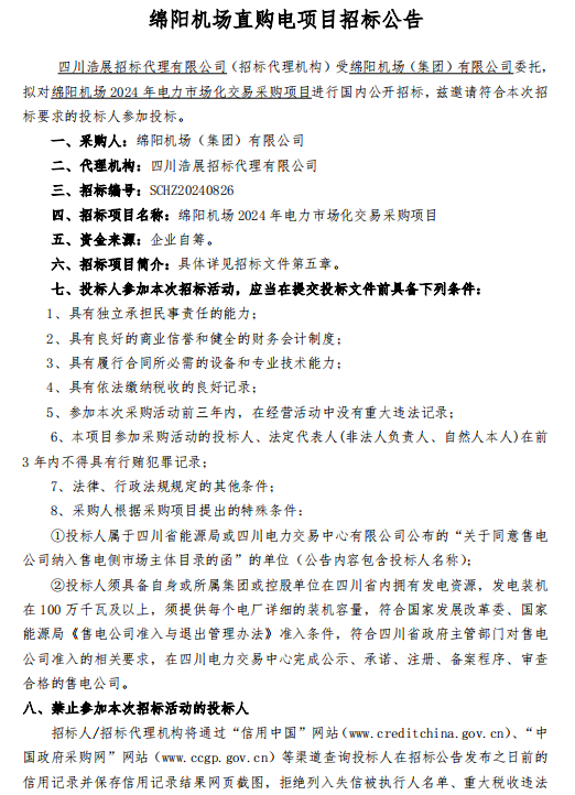 綿陽(yáng)機(jī)場(chǎng)直購(gòu)電項(xiàng)目招標(biāo)公告